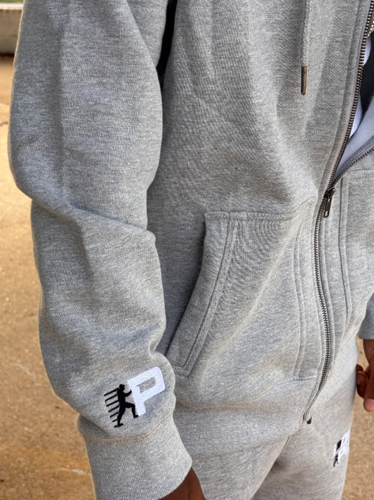 Power Push Premium Heavyweight Organic Cotton Zip Hoodie – Luxury Streetwear Zip-Up (Heather Gray))