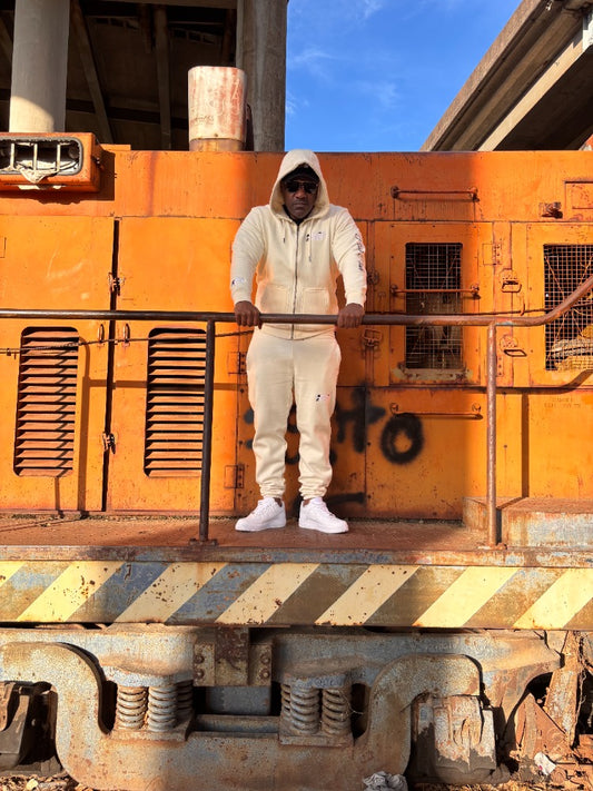 Power Push Premium Heavyweight Organic Cotton Zip Hoodie – Luxury Streetwear Zip-Up (Cream)